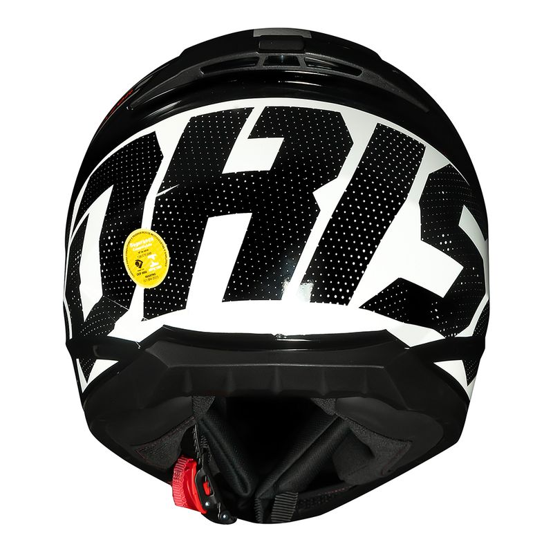 • Suas linhas aerodinâmicas foram inspiradas nos capacetes de alto desempenho e traz forma oval que diminui o arrasto e potencializa a circulação de ar, canalizadas pelas grandes entradas frontal e superior. Diretamente ligadas ao EPS de multidensidade, o ar que entra circula por canaletas até a saída traseira, tornando a pilotagem do motociclista mais confortável;